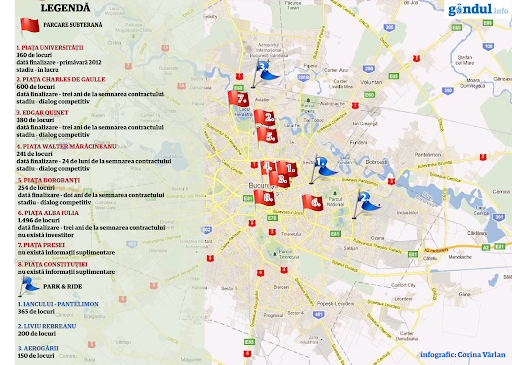 Harta parcărilor care vor fi construite în Bucureşti: București Dorobanți, Capitale, Metrou, Piata, Victoriei, Stefan cel